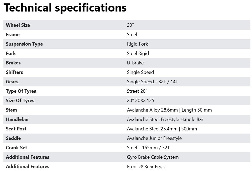 Freestyle components let you decide how you want to ride - deviate from the norm, with Gyro Brake cables, a freestyle handlebar, and front and rear brakes you have the choice to ride your own way with the Avalanche Dv8.